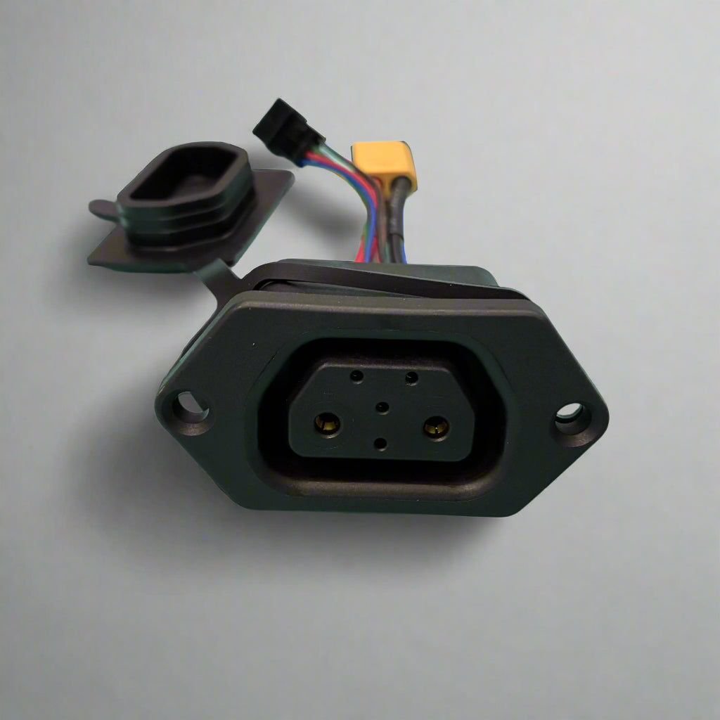 Revolt motorcycles operate at a higher voltage (72V Nominal / 84V Peak) than typical electric scooters, making the charging socket a critical safety component. This premium replacement unit is built with High-Dielectric insulation to prevent arcing and thermal breakdown. It comes pre-wired with a complete 6-wire harness, ensuring full compatibility with the motorcycle's "Smart BMS" for error-free charging handshakes.